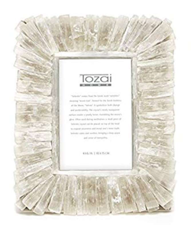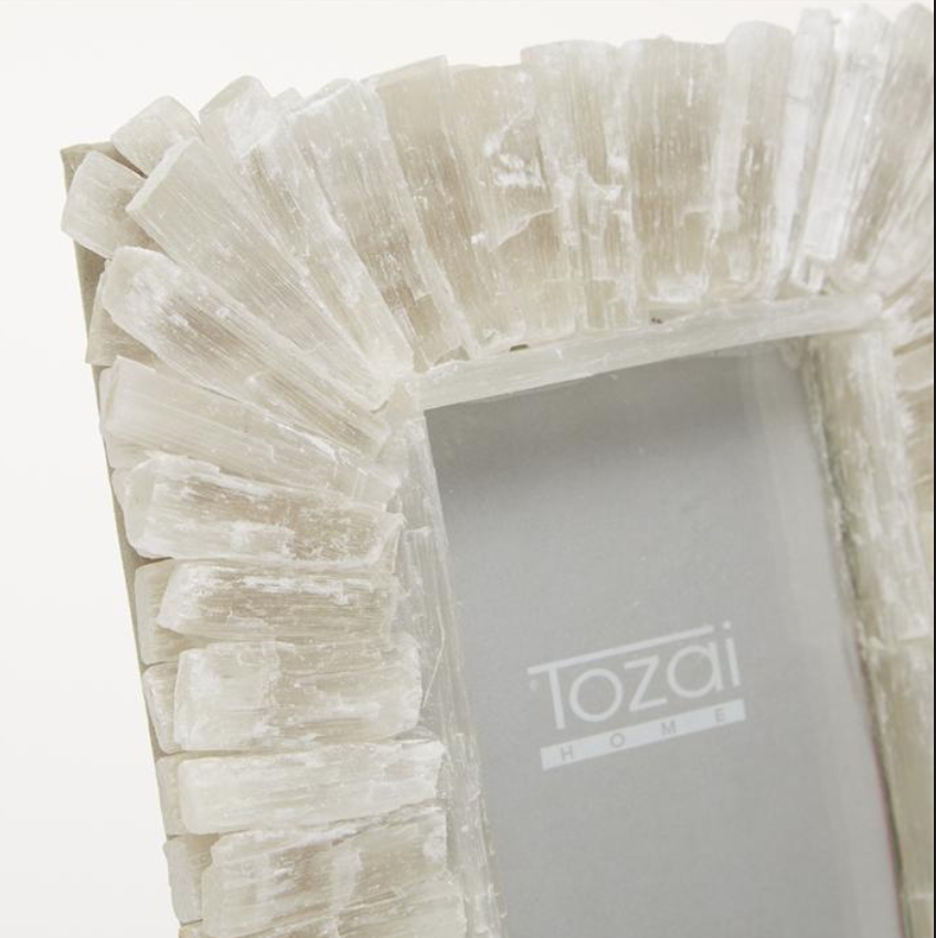 This picture frame made from Selenite crystals found in Mexico. Has a 4 x 6 opening and can be set up vertically or horizontally.